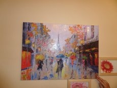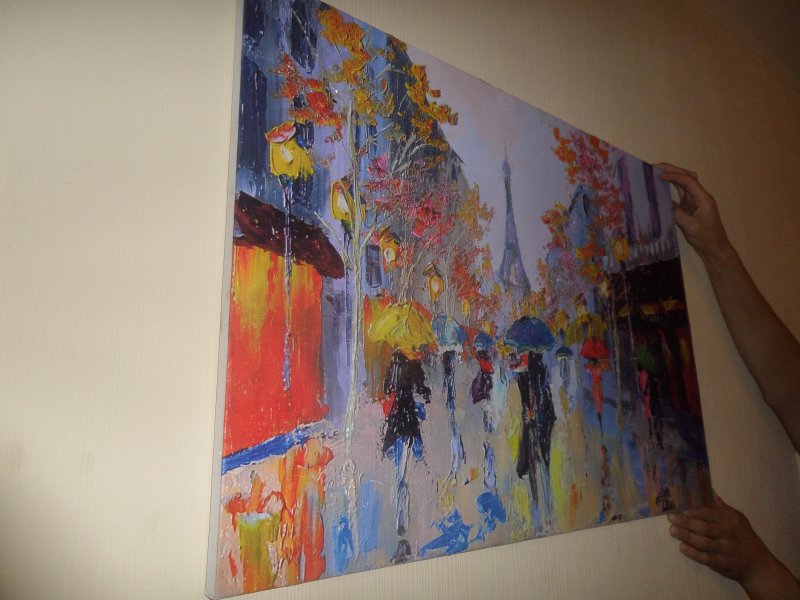 В продаже картина на холсте, обработанная фактурным гелем "Париж.Зонтики" 50х70см цена 2100р.