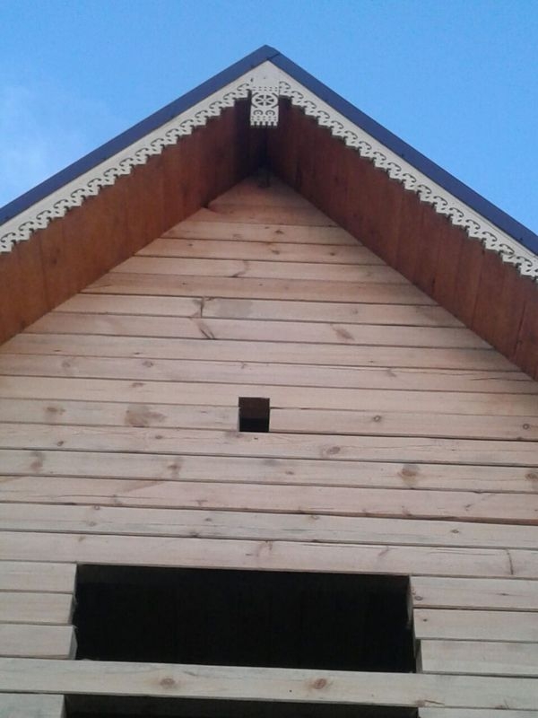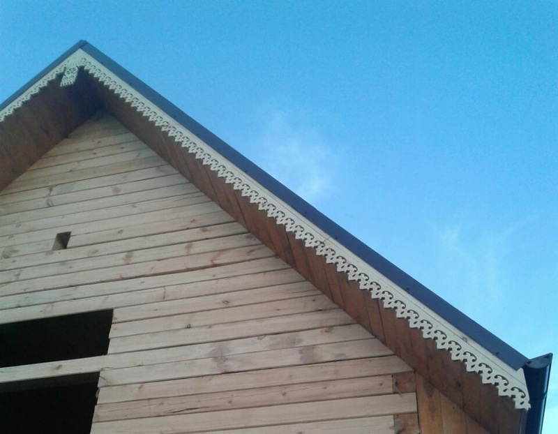 4) Чтобы они смотрелось хорошо, сверху причелин нашиваем узкие доски, окрашенные в тот же цвет.