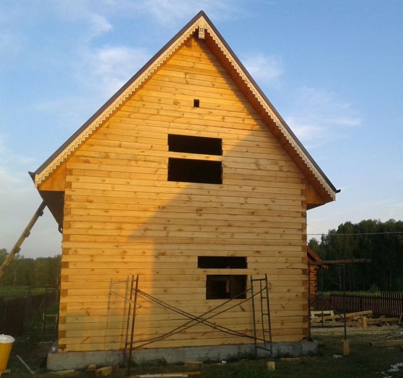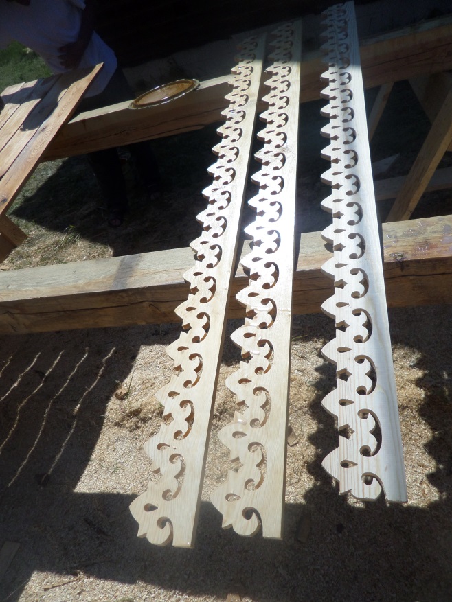 6) В следующем году, когда дом даст усадку, при установленных окнах и окрашенном фасаде, будут поставлены, следующие элементы. Это большие солярные знаки (солнце), на фронтонах вверху, подзоры по боковым карнизам, наличники на окнах (обязательно с берегинями) и причелины на углы.