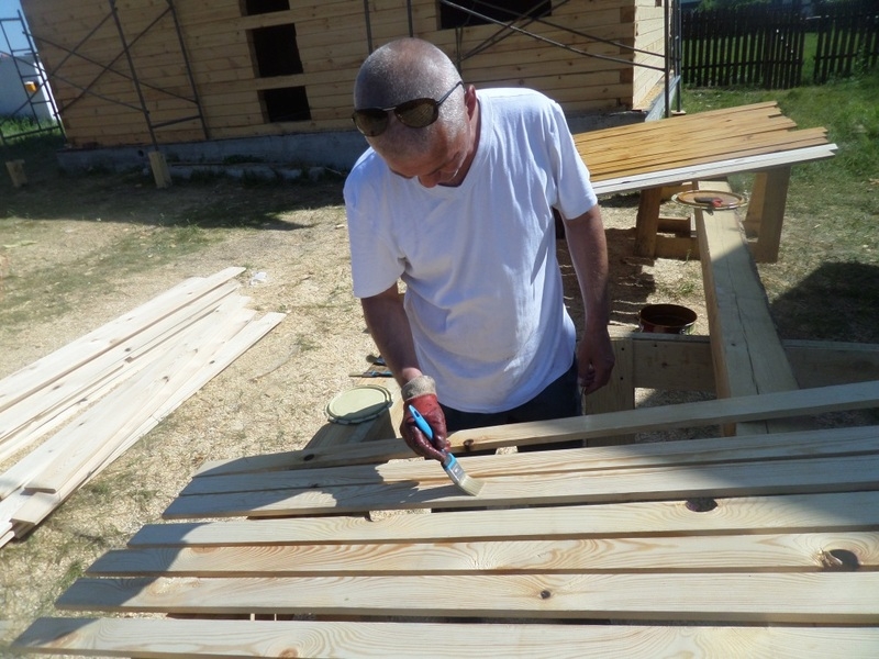 2) Лучше, если цвет элементов отличается от общего фона дома. Например, на фото резные элементы окрашены бесцветной пропиткой, а сам дом будет окрашен пропиткой "калужница", более темной (как карнизы).