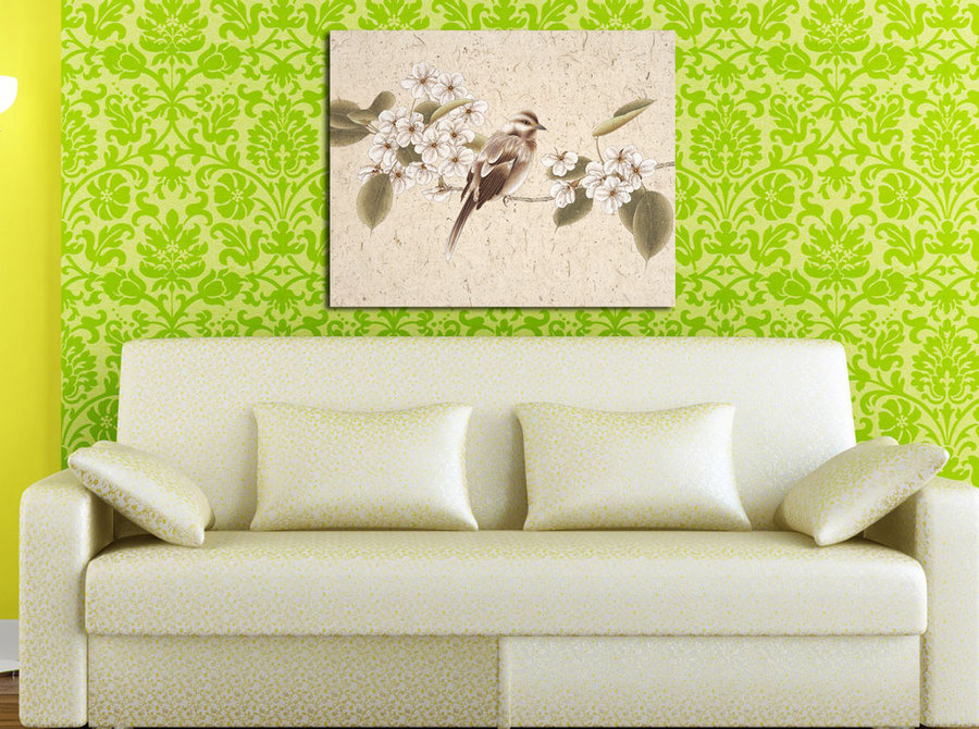 ДИЗАЙНЕРСКАЯ КАРТИНА НА ХОЛСТЕ: ВОРОБЕЙ НА ВЕТОЧКЕ