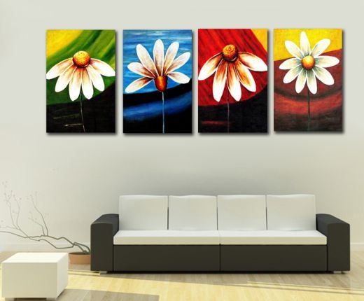 "Стильные ромашки" - роскошный цветастый полиптих. Изящные цветы и насыщенная цветовая палитра будет смотреться очень элегантно в гостиной или спальной комнате с современным интерьером.