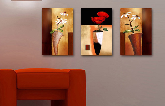 Красочные картины с изображением цветов в вазах послужат отличным декором для любого интерьера. В палитре триптиха содержится множество цветов и оттенков, позволяющих сочетаться с любым фоном.