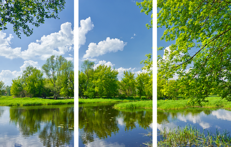Триптих на холсте с великолепным пейзажем "Родные места" будет стильным дополнением любого интерьера.