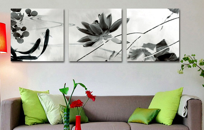 Черно-белый триптих с изображением рыбок, создаст необыкновенную атмосферу стиля и уюта в доме.