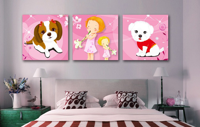 Смешные щенки и прелестные девочки с флейтами - это триптих для настоящих маленьких красавиц. К тому же, интерьер детской комнаты замечательно преобразит розовый цвет.