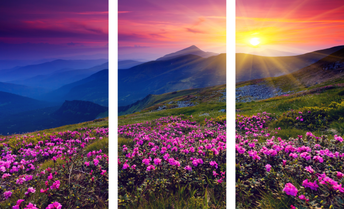 Великолепный пейзаж "Рассвет в горах" внесет в интерьер нотку загадочности и романтики.
