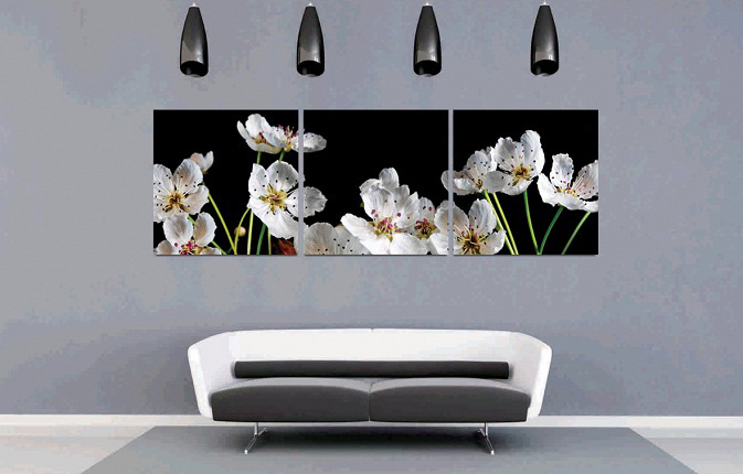 Всем известно как прекрасна весна, когда вишневые деревья покрываются белой пеленой цветов. Триптих с изображением вишневых соцветий создаст атмосферу вечной весны.