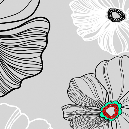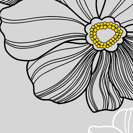 Серые цветы, словно нарисованные мелом на асфальте. Нежный и мягкий рисунок понравится каждому.