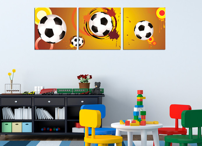 Картинка футбольных мячей в детской комнате для мальчишек станет ярчайшем подарком в их жизни.