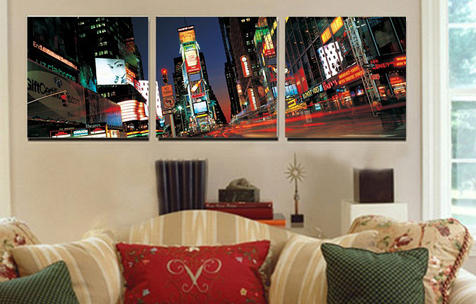 Красочные улицы ночного города окунают в атмосферу праздника и веселья. Декоративный триптих , который украсит современный интерьер.
