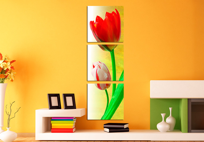 Прекрасные весенние цветы внушительных размеров будет очень интересно  смотреться в  вашей гостиной или спальной. Преобразите стены вашей комнаты триптихом "Тюльпан".