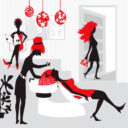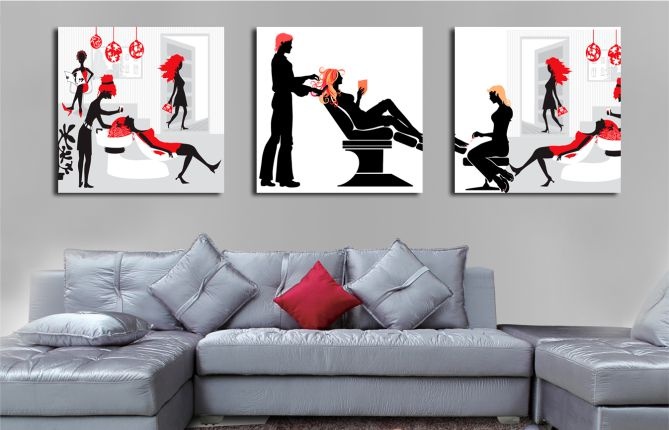 Забавный тематический триптих "Приют модниц" дополнит интерьер салона красоты или парикмахерской. Классические цвета композиции подойдут для убранства комнаты, выполненной в любом цвете.