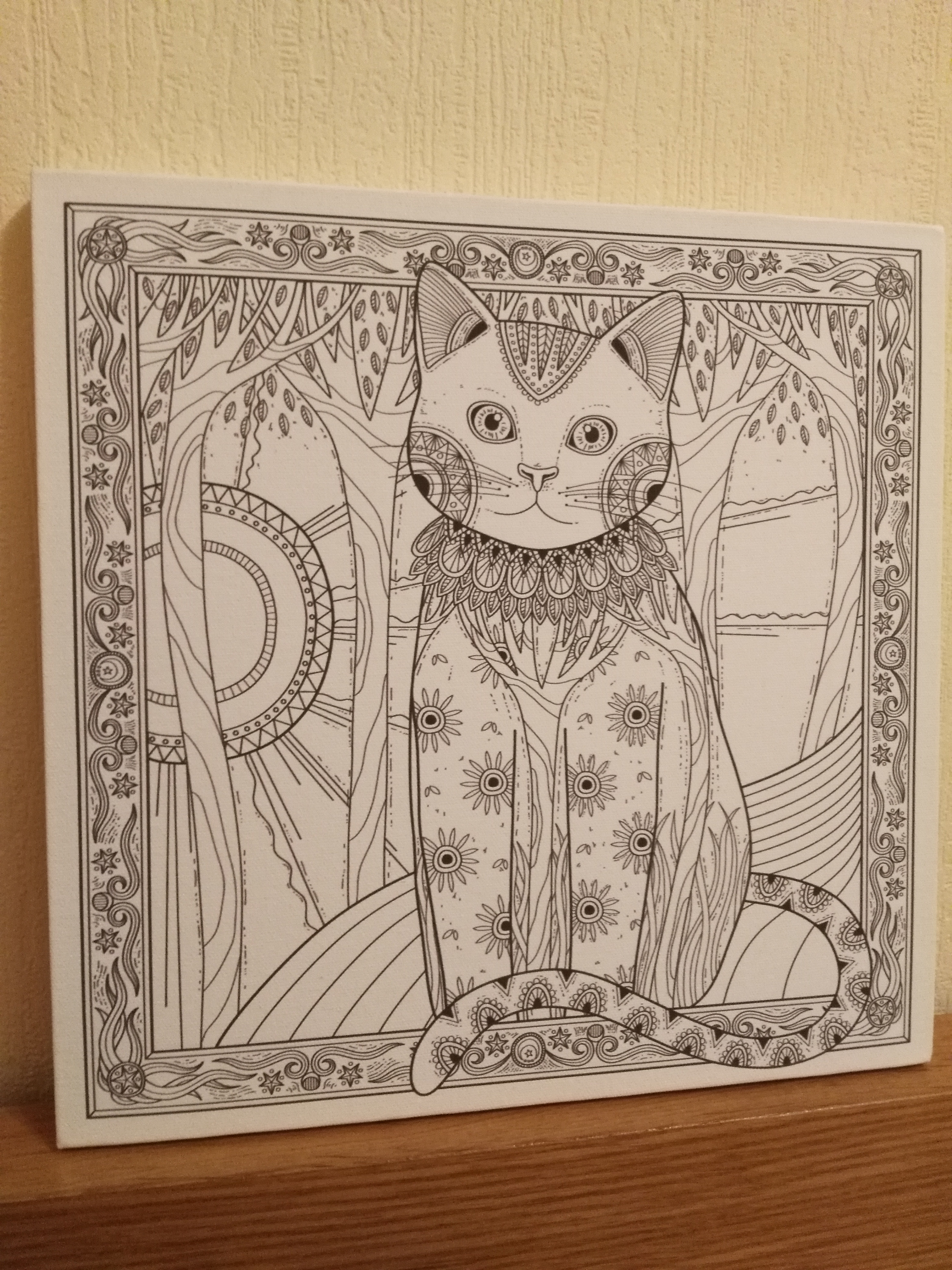 Раскаска на натуральном холсте на деревянном подрамнике.