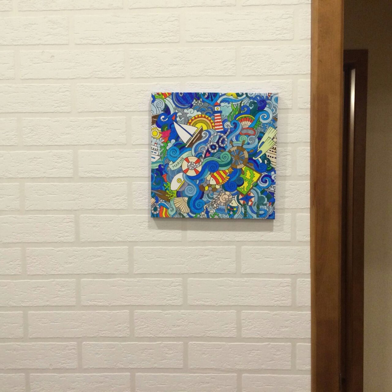 Раскаска на натуральном холсте на деревянном подрамнике.
