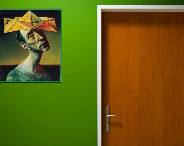 Картина «Бумажная шляпа» смотрится весьма оригинально и своеобразно. Полотно станет особой изюминкой в оформлении интерьера.