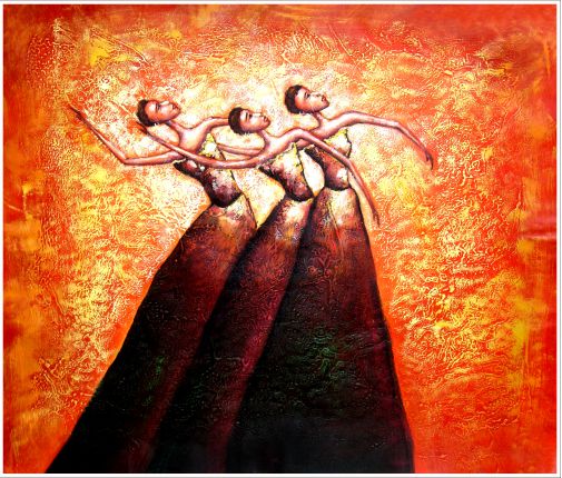 Динамичная картина "Три грации" выполнена в гармоничной цветовой гамме. Необычные образы танцующих девушек разнообразят интерьер светлой гостиной или спальной комнаты. Особенно картина понравится любителям современного искусства.
