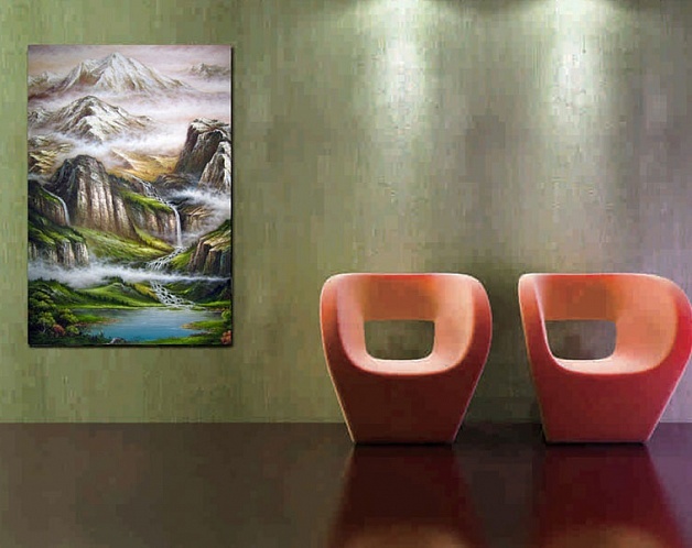Прекрасная картина «Горная река» запечатлела в себе всю красоту горной речки нетронутой цивилизацией. Глядя на это полотно, ты как будто переносишься на берег реки в отдаленный уголок леса в горах. Природная живопись прекрасно подойдет для декорирования любого помещения.
