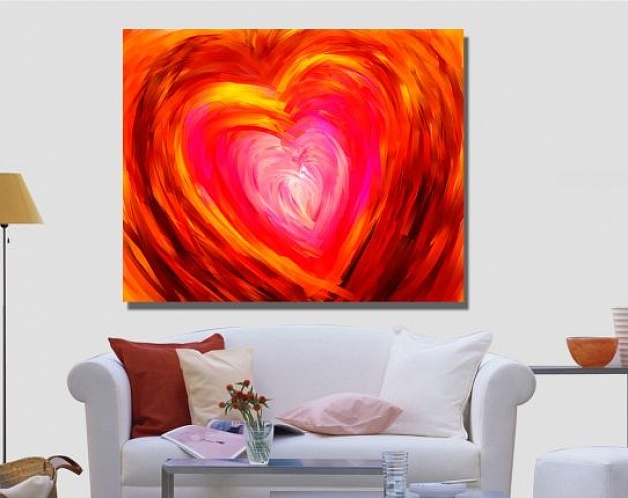Красочная картина "Безграничное сердце" представляет собой сочного цвета сердце, нарисованное смелыми широкими мазками краски. Такая композиция уместно будет смотреться на стене в спальне девочки-подростка.